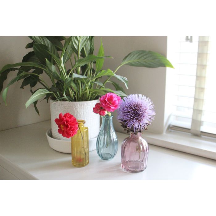 Brighten up your home with this Set of 3 Glass Vases in Different Colours. Measuring 7x14x7cm each, these stylish vases add a pop of colour and elegance to any room. Perfect for displaying fresh flowers, dried arrangements, or as standalone decorative pieces, their vibrant hues and sleek design make them a versatile addition to your decor. Crafted from high-quality glass, these vases are both durable and visually appealing. Whether placed on a dining table, mantel, or shelf, this trio of colorful vases brings a touch of sophistication and charm to your home.