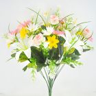 Elevate your décor with our Artificial Tiger Lily Rose Flowers in White. This stunning arrangement features pristine white lilies, delicate pink roses, and vibrant yellow flowers, expertly crafted to bring a touch of elegance and natural beauty to any space. Perfect for weddings, home decor, or special events, these lifelike blooms offer timeless charm without the need for maintenance. Enjoy the lasting beauty of fresh flowers year-round with this exquisite floral display.