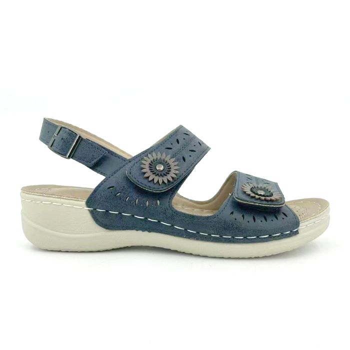 Step into effortless style and supreme comfort with the Becky Women's Cushion Walk Sandals Navy. Designed for all-day wear, this chic sandal features a supportive cushioned sole, an easy-to-adjust velcro closure, and a beautifully detailed floral cutout design. Whether you're out for a casual stroll or running errands, these sandals are the perfect blend of fashion and function.