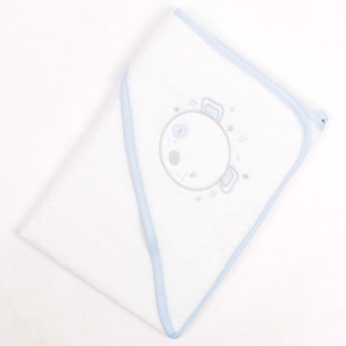 Keep your little one dry & cosy after bath time with this super soft Blue Trim Cotton Rich Puppy Hooded Towel. Made from a soft cotton rich fabric, this hooded towel features a cute embroidered design on the hood with trim