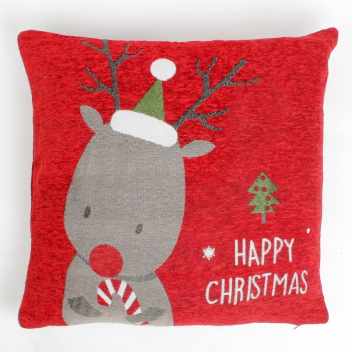 Christmas Cushion Cover Happy Christmas. Printed on one side, the cover has a zipped opening