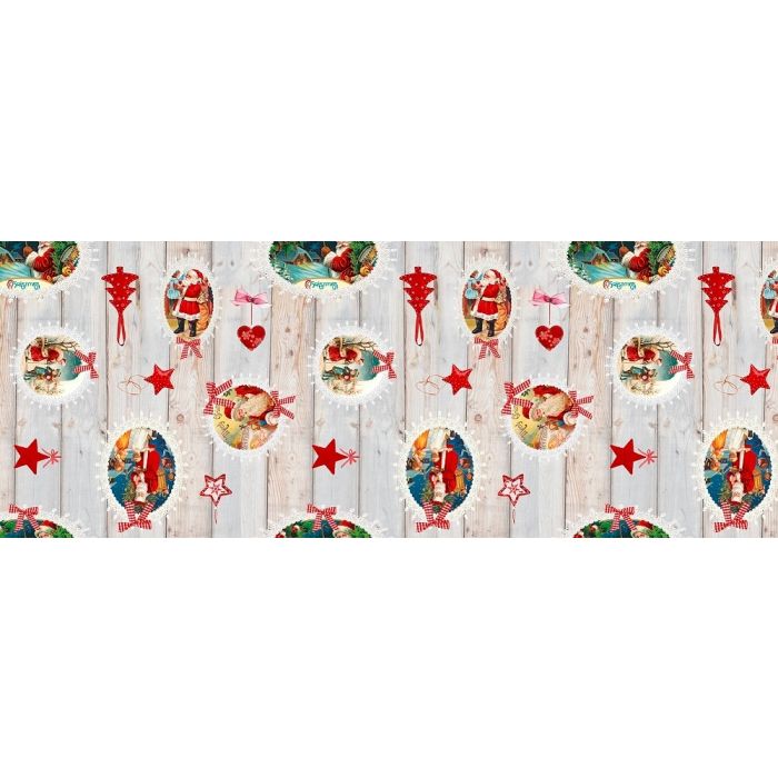 Christmas Glossy Oil Cloth Vintage Santa 150.1 - By the Metre