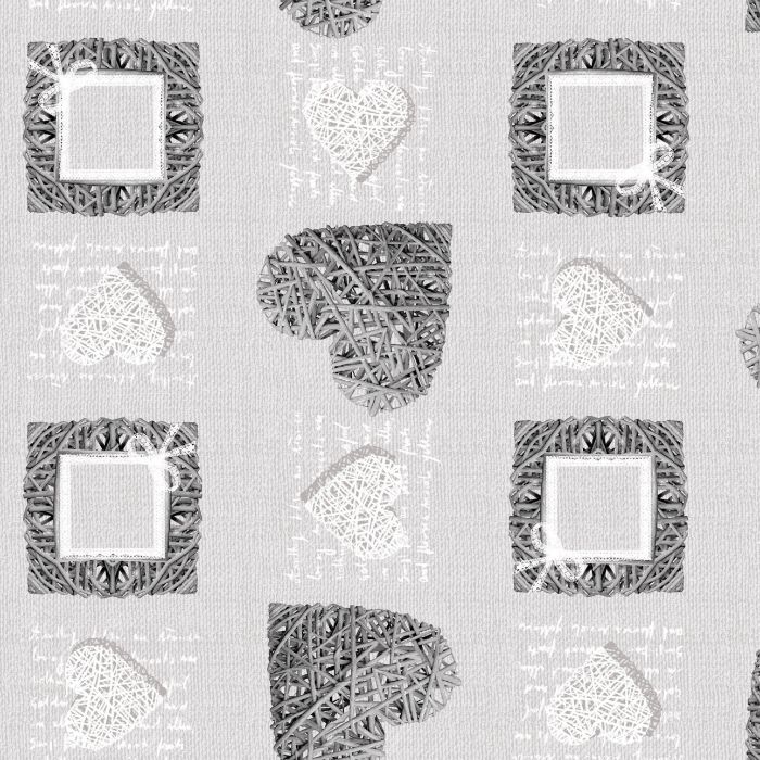Grey Heart Oil Cloth - By the Metre