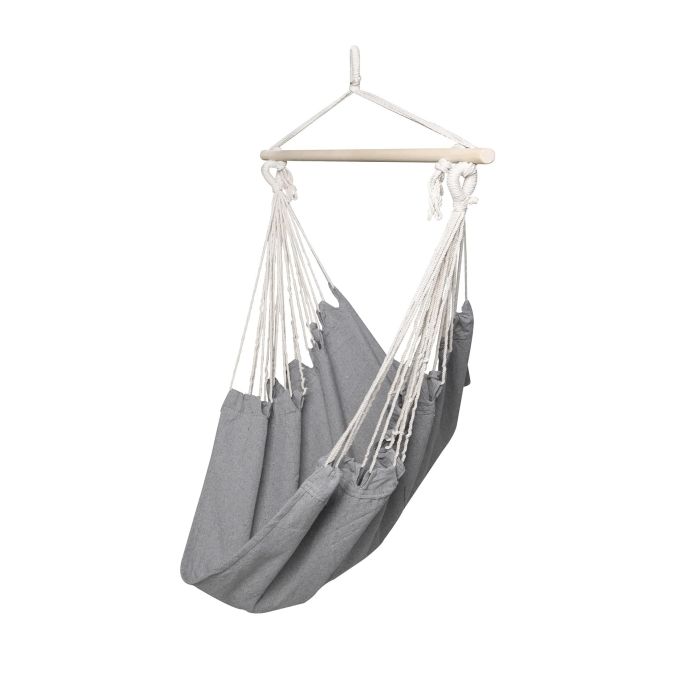 Whether you're swinging outside or inside, this Hammock chair is perfect for relaxing in. Made from a cotton rich canvas like material, this swinging canvas chair will hold up to 120kg of weight.