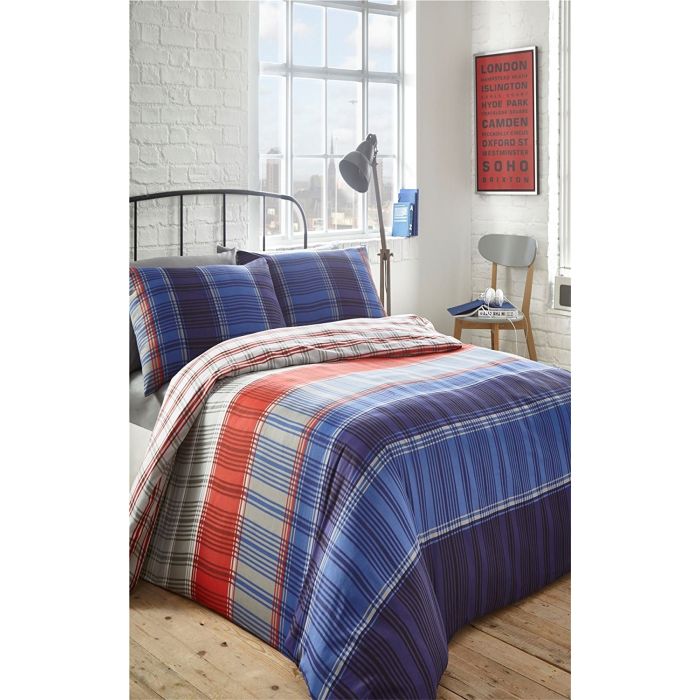 This Radley Blue Reversible Duvet Cover Set features a reversible check pattern in shades of cream, blue & red.