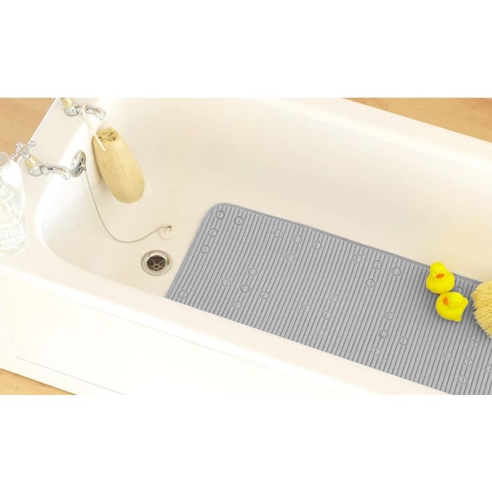 Stay on your feet with this ribbed bath mat. Featuring suckers underneath to stay in place & a cushioned surface for comfort, these bath mats will suit almost any bath. Measuring 91x 43cm, these PVC bath mats are ideal for preventing any slips in the bath, as well as providing comfort.
