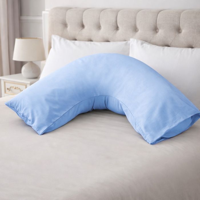 A soft and durable polycotton V-shaped pillowcase in a calming blue tone, designed for long-lasting comfort and a coordinated bedroom look.