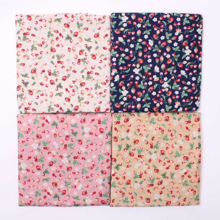 Made from a super soft 100% cotton fabric, this original craft fabric is great for dress making, home furnishings or whatever project you have in mind. This 100% Cotton Craft Fabric Summer Fruit & Flower design features a strawberry, cherry & floral design and comes with a pink, cream, navy or beige background