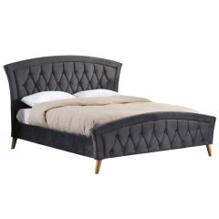 Curved Grey Bouclé Upholstered Bed Frame at Guineys Ireland