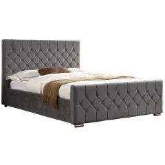 Luxury Grey Velvet Diamond-Tufted Bed Frame at Guineys Ireland