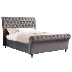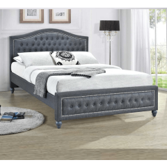 Luxury Grey Velvet Diamond-Tufted Bed Frame