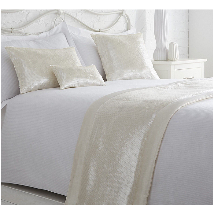 Ingrid Sequin Quilted Bed Runner Throw - Ivory