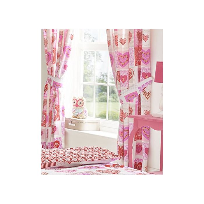 These curtains are a perfect addition to any girls bedroom, featuring a stylish design of hearts and flowers in shades of red and Pink