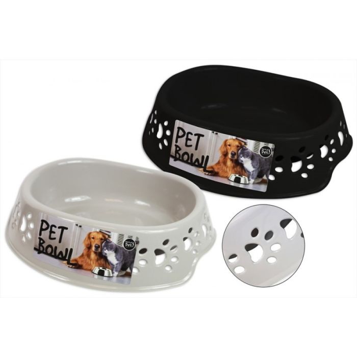 The perfect feeding solution for your dog or cat (or Guinea pig!), this Large plastic feeding bowl comes in Black or Grey and features cut out paws on the side