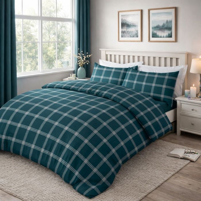 Lewis's Teal Check Complete Bed in a Bag Duvet Cover Set