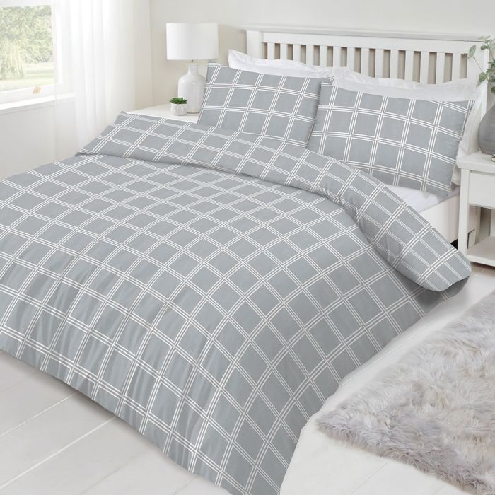 Elevate your bedroom style with the Montreal Check Duvet Cover Set in Grey. Designed to blend timeless charm with cozy comfort, this set features a classic check pattern on a modern grey background. Made from ultra-soft microfibre, it offers a luxurious feel that's lightweight, breathable, and easy to care for—perfect for everyday use.