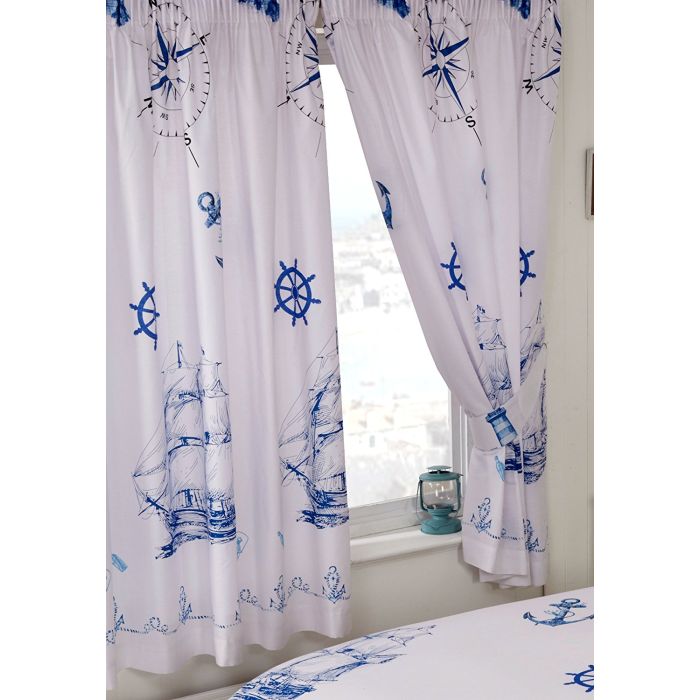 The perfect addition to your nautical themed room, these tape top Nautical Readymade Curtains come with 2 tie backs
