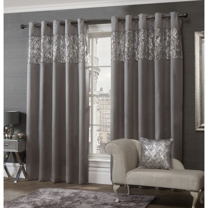 Paris Sequin Grey Eyelet Readymade Curtains