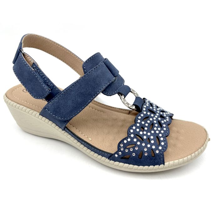 Step into elegance and all-day comfort with the Serena Women's Cushion Walk Sandals in Navy. These chic slip-on sandals are designed with soft cushioned soles and adorned with sparkling diamante details, adding a touch of glam to your everyday look. Whether you're running errands, heading out for lunch, or enjoying a summer stroll, these sandals offer the perfect blend of style and support.