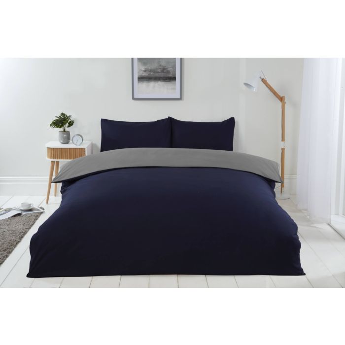 Soft Touch Lyra Reversible Duvet Cover Set Navy & Grey