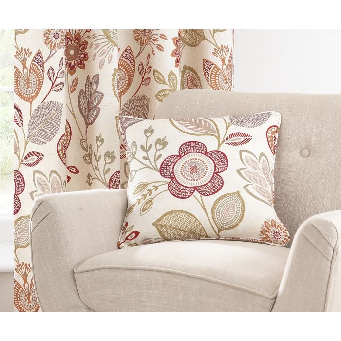 Willow Red Cushion Cover with zipped opening and piped edges. Measures 18x18" (45x45cm)