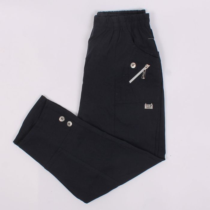 Explore our chic Women's Navy Zip Crop Trousers, the epitome of versatility and style! Enhance your wardrobe with these modern essentials, effortlessly blending comfort and sophistication. Skillfully fashioned from high-quality materials, these trousers showcase a flattering cropped design accentuated by a sleek zip and button embellishment. Whether you're conquering daily tasks or embracing an evening out, the convenient pockets provide functionality while maintaining a fashionable edge. Plus, with the elasticated waistband, you'll experience a perfect fit every time you slip them on.
