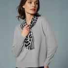 - Classic grey jumper with attached leopard print scarf