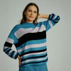 Make a statement with this Women's Stripe Jumper in a vibrant teal shade. Designed with broad stripes and a comfortable round neck, this jumper combines warmth and style effortlessly. The eye-catching teal color adds a unique pop to casual outfits, while the soft, cozy fabric ensures comfort throughout the day. Perfect for cooler weather, this jumper is versatile enough to wear with a variety of looks.
