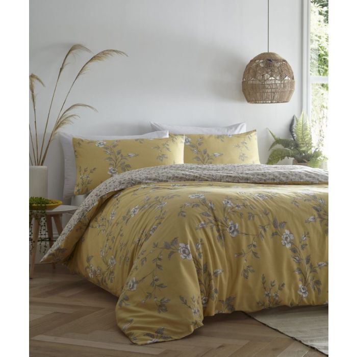 Brighten up your bedroom with this gorgeous reversible Yasmina Ochre Duvet Cover Set. Featuring a beautiful light yellow floral pattern on the front with hints of white, grey & ivory, the reverse has a busier yet lighter tone.